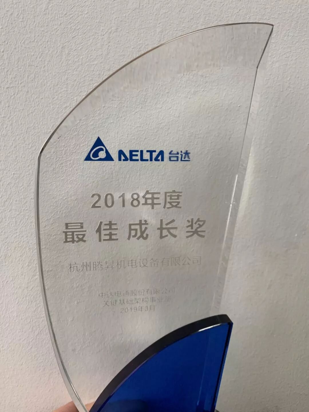 杭州騰昇—臺(tái)達(dá)2018年度最佳成長(zhǎng)獎(jiǎng)