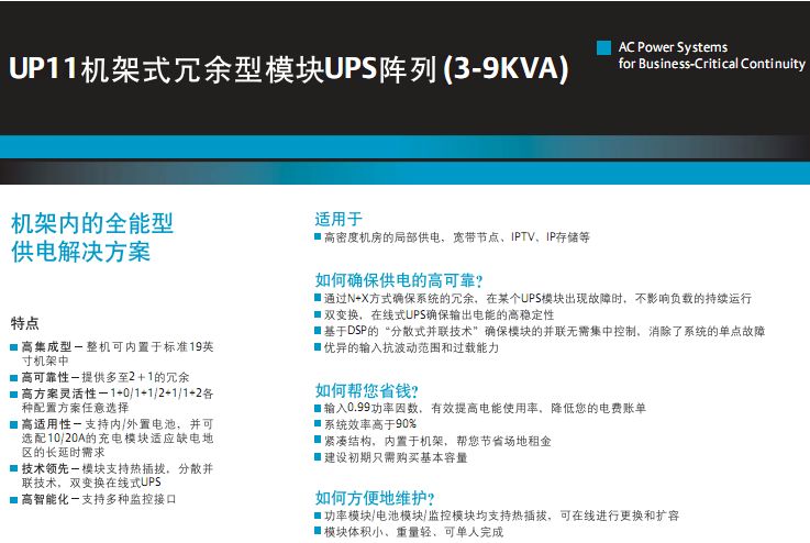 UP11機架式冗余型模塊UPS陣列