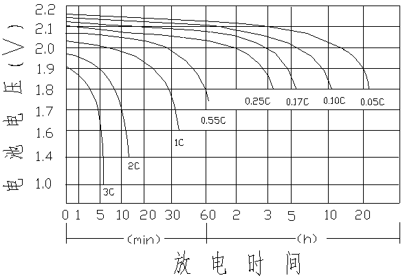 10小時率(0.1CA)、5小時率(0.17CA)、3小時率(0.25CA)放電終止電壓為:1.8V/臺