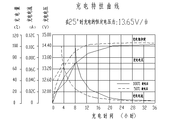 電池循環(huán)使用時(shí):充電電壓:14.0~14.5V/臺(tái)。(最大電流≤0.2C10)
