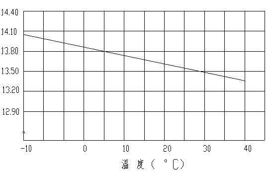環(huán)境溫度在25℃時(shí),電池的浮充電壓為:13.65±0.1V/臺(tái);電池的浮充電壓值應(yīng)隨著環(huán)境溫度的降低而適量增加,隨著環(huán)境溫度的升高而適量減少,其關(guān)系曲線見下圖: