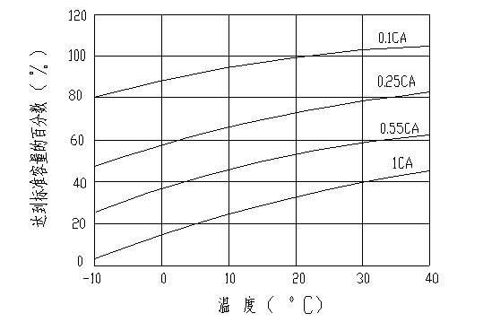 蓄電池不同放電率的放電容量值都會(huì)隨著環(huán)境溫度的升高而緩慢增加,其關(guān)系曲線見下圖: